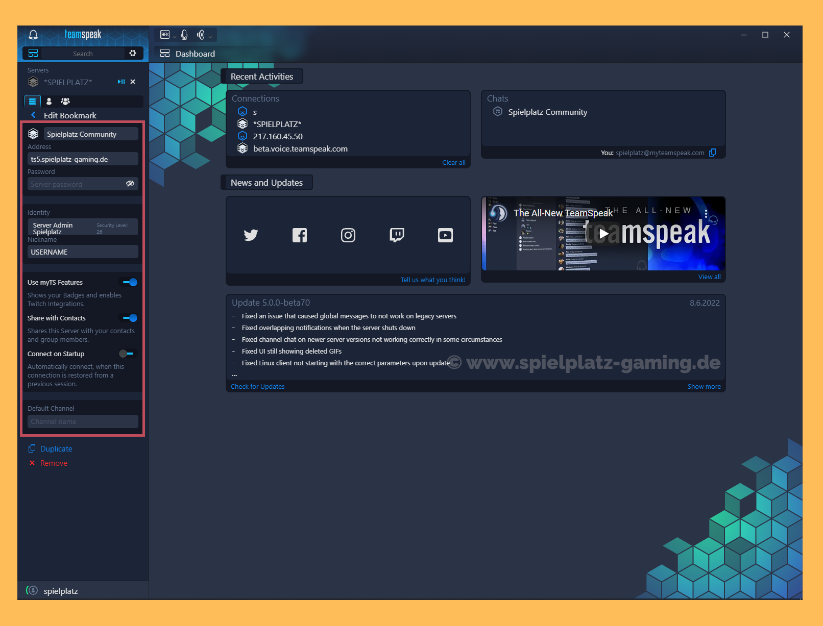 Unser TeamSpeak 3 Server wurde bereits an den TeamSpeak 5 Beta Client angepasst. Das Du alle Funktionen im vollen Umfang nutzen kannst, lade Dir die aktuelle Beta Version herunter. In dieser Anleitung erklären wir Dir, wie du deine Identität (somit deine Fortschritte auf unserem Server) problemlos übertragen kannst.